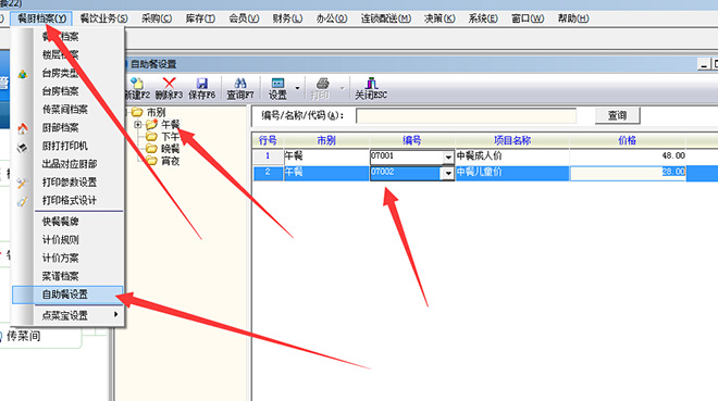 然后在餐厨档案的自助餐设置里面设置好各个市别的价格.(如图一)
