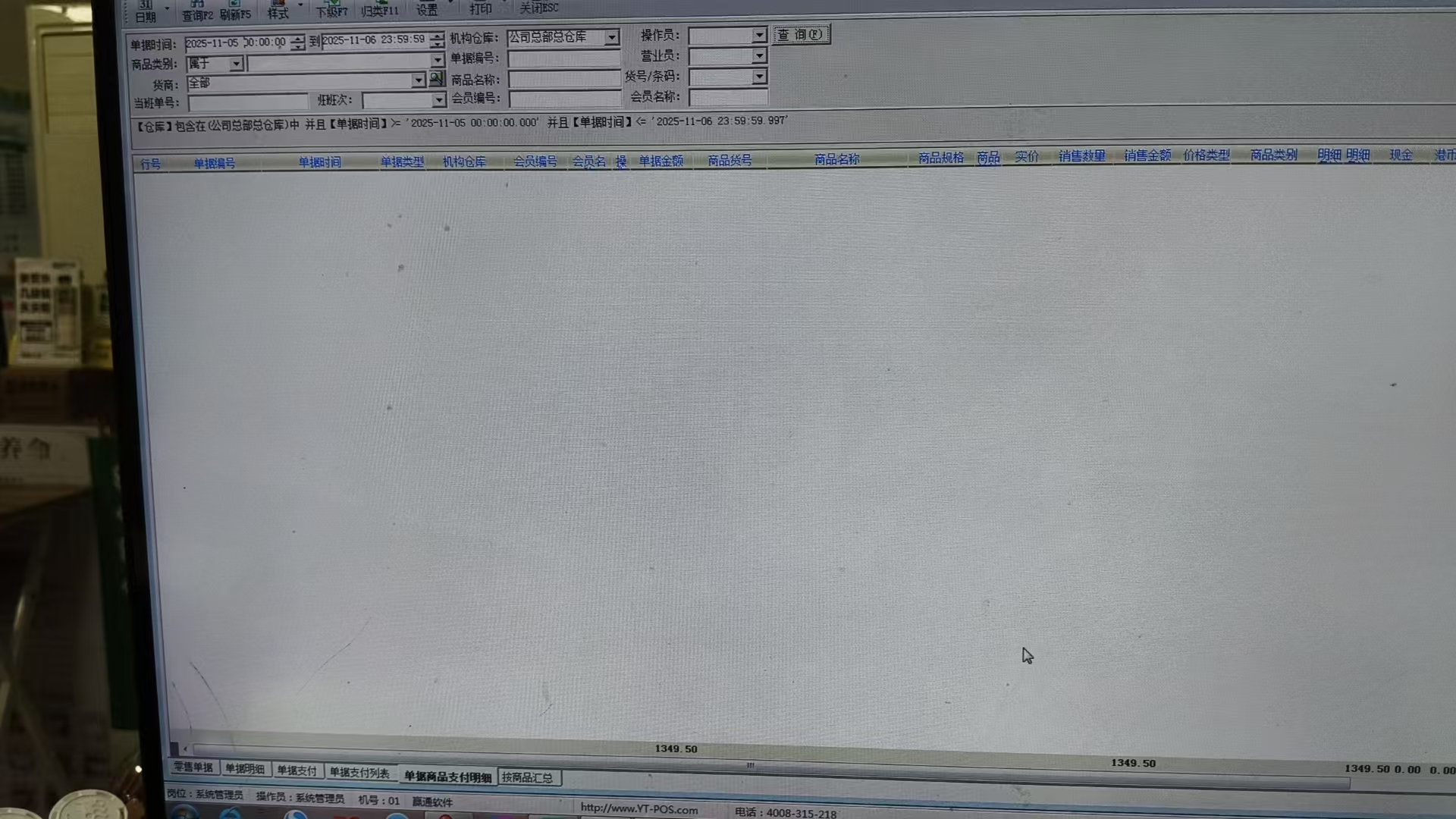 前台零售查询的单据明细 以及零售单据 详单都不显示