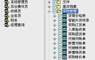再一个如果不想给这个人员采购的权限,采购管理的勾都不能选上的。