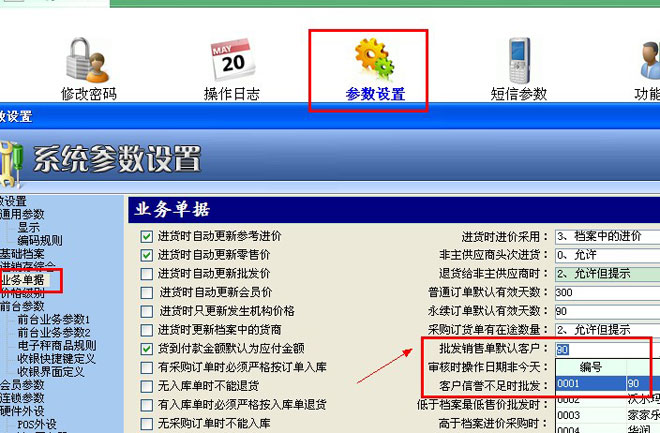 在系统设置,参数设置,下面的业务单据,右边中间位置,有个批发销售默认客户,可以进行选择。如下图。