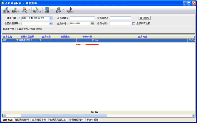 会员补卡时选会卡支付5元卡费,操作正常成功。查询会员档案里的会员余额是正确扣款后的金额,可是查询储值报表里的金额却与档案里的金额不一致,没有扣除补卡时会卡支付的5元钱,显示的金额多了5元钱。请技术认真解决!