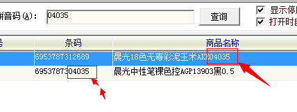 系统设置中,“前台输入检索框,允许模糊查找商品”,如果有一个商品名称与一个条码都有相同的编码,前台就不能选了,直接就出的是条码的商品。