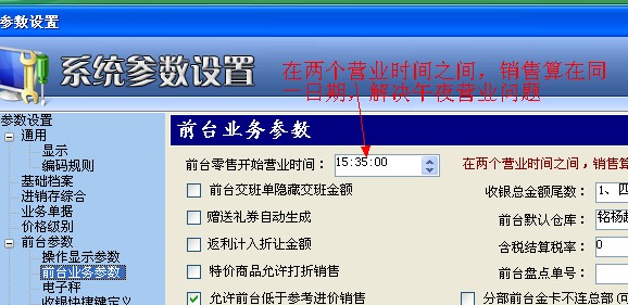 有些客户,是销售到凌晨两三点的,而且这两三销售的商品,其毛利,销售明细等都要算到前一天去,怎么操作?请看下图。