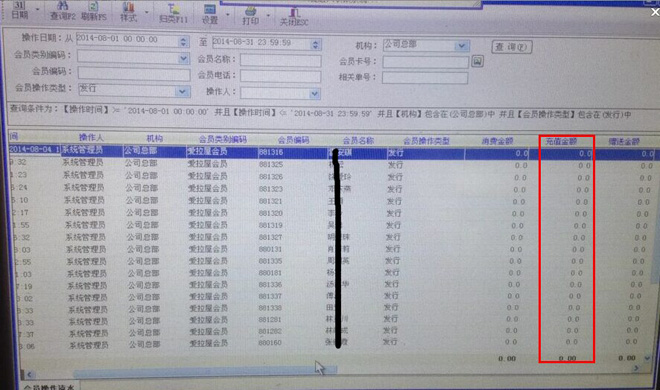 选择发行 里面有在前台发卡充值的会员卡,但充值金额是零。